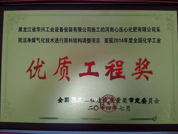九游网页版·官方端入口施工的“河南心连心化肥有限公司采用洁净煤气化技术进行原料结构调整项目”荣获全国化工工程建设质量奖评审委员会颁发的2014年度全国化学工业优质工程奖。