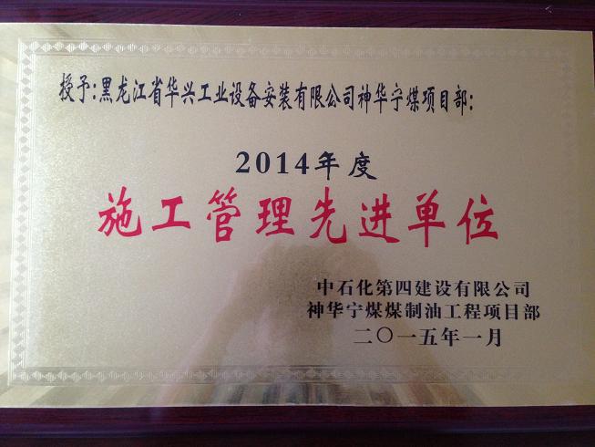 今年一月份,中石化第四建设有限公司授予九游网页版·官方端入口神华宁煤项目部“施工管理先进单位”。